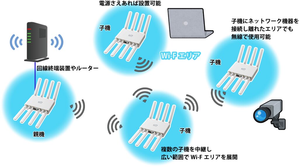 Home このような課題を抱えていませんか? 課題 1電波の届かない場所 課題 2LAN配線が困難または高コストな現場 課題 3「電波干渉による不安定さ」が起こる高密度・移動環境 課題1山間部や離島、被災地など、LAN配線が困難なエリアではネットワーク構築が断念されがちです 課題2高所・屋外・広域・仮説現場ではLAN配線が困難で、工事負担や再配線コストが大きな課題に。 課題3商業施設や工場では、電波干渉で通信不安定が課題。AGVや監視カメラの接続不良が業務停止を招く恐れも。 これらの課題をPicoCELAで解決 衛星通信×PicoCELAでLAN不要の広域Wi-Fiを即構築 工事ゼロ、即設置防水・軽量・スピード導入 電波経路を自動最適化し移動中も安定通信 山奥でも、無人の建設現場でも、災害現場でも。PicoCELAなら、その場で確実に通信環境を確保できます。「つながらない」は、もはや過去の課題です。 電源があれば即接続。工事不要でコスト削減、仮説現場にも迅速導入。防水・軽量で屋内外問わず柔軟に展開可能です。 PBE技術で移動中も安定通信。6GHz対応(※屋内モデルのみ)で干渉を回避しAGVやロボットもスムーズに接続。リアルタイム通信でDXを加速。「切れない・遅れない」Wi-Fiが多機器環境を支えます。 製品特徴 配線工事コスト削減 PicoCELAは親機のみが優先LAN接続するだけでOK!配線工事が必要な箇所を減らすことができ、コスト削減が可能。 PicoCELAは故障をAP同士が自動で感知し自ら接続を再構築 導入事例 スキー場での利用5ヘクタールもの広大な敷地全域をPicoCELA12台でWi-Fi化。専用クラウドサービス「PicoManager」と連動し、ユーザーの行動分析にも役立てています。 製造現場での利用独自システム運用の際に、従来のインフラだけでは満足のいく通信品質や環境が確保できなかったため、PicoCELAを導入。 最小限のケーブル配線でネットワーク環境の改善が実現。 安定したネットワーク環境の提供PicoCELAを用いることでLAN配線工事の費用と時間を大幅に改善し、簡易にWi-Fi環境を構築。各種IoT機器を現場に持ち込むことができ、作業効率化とネットワークトラブルが改善され、働き方にも革命が起きています。 PicoCELAをオススメする理由 WiFiの配線工事を削減し、コストを抑えることができる広い工場や倉庫にWiFiを通して、無線化可能複数のアクセスポイントを簡単・管理が可能 Niinuma Network. home カタログ請求 お問い合わせ ニイヌマサイト